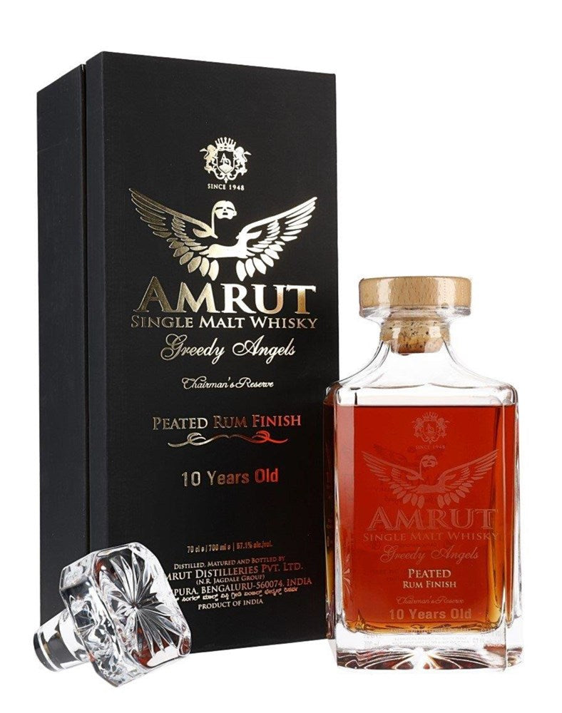 The 4th release in the Greedy Angels series, showing that Amrut can do as a 10 Year-Old whisky. A rich, smoky Indian single malt whisky matured for 10 years and finished in an exrum cask, before being bottled in October 2019. Smoky peat and woody spice notes lead to sweet spice and marmalade, moving into cherry, cocoa and sweet vanilla. The palate shows sweet butterscotch, citrus and tropical fruits, followed by camphor, soft smoke and rumsoaked raisins.
