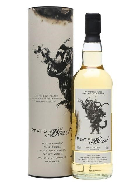 A lightly coloured young, extremely peaty whisky from an unnamed distillery somewhere in Scotland. It's got the rampant smoke you'd expect from a beastly named whisky as well as a pleasant, citrussy fresh fruitiness. The packaging is pretty striking too, with a scary monster and a (deliberately) singed label. Bottled at 46% and un-chillfiltered, just how we like 'em