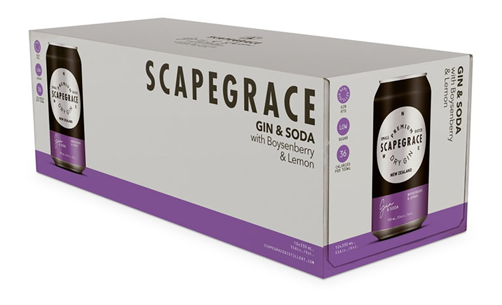 Scapegrace Gin, Soda garnished with Boysenberry Lemon.