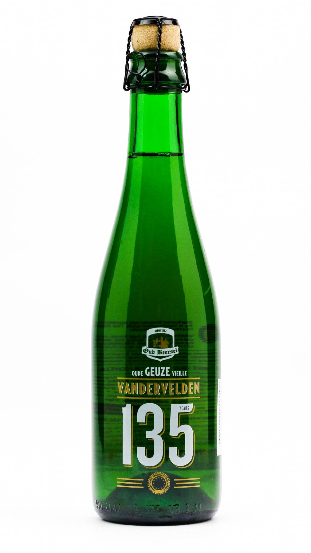 Oude Geuze Vieille Vandervelden 135 is a geuze released to honor the founding of Oud Beersel in 1882. It was released in the spring of 2017 and is a blend of 1-year old lambic aged in 30-year old Tuscan Brunello di Montalcino barrels and 3-year old lambic aged in Beersel's own foudres.