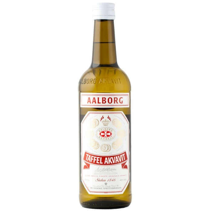 Aalborg Taffel Akvavit is the uncrowned king of aquavits - the original crystal clear Danish caraway aquavit. It was aquavit pioneer Isidor Henius who in 1846 first put the bottle of the characteristic red-white label on the lunch table. And it hasremained a permanent fixture ever since. Aalborg Taffel Akvavit -or R?d Aalborg as it is also known - continues to be Denmark's most popular spirit. It appears on both the Danes' lunch tables and at the banquets hosted by the Danish Royal Palace.With its alcoholic strength and intense caraway flavour AalborgTaffel Akvavit is perfect for all the traditional strong Danish lunch dishes, especially the marinated herring. It is also great with classic dinner courses such as roast and pork.