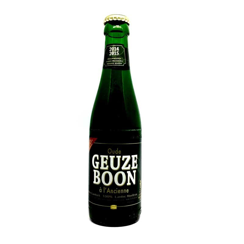 Oude Geuze Boon is one of the finest examples of the traditional 100% spontaneous fermentation Lambic style. To moderate the sourness, Boon Brewery only brews Lambic in the 7 cold months, from early October until April, according to the traditional "turbid mash" system. This Lambic beer is brewed from 40% unmalted wheat, 60% of barleymalt, aged hops and wild yeasts collected from our coolship and is aged for 1, 2 or 3 years in oak casks. The blend, a mild average 18 months old Lambic (unsweetened, unfiltered, unpasteurised) is refermented in the bottle and can be stored up to 20 years. Brewed in Lembeek, the village that gave Lambic its name. Awards at the World Beer Championships: 2008 Gold, 2010 Silver, 2012 Gold Medal.