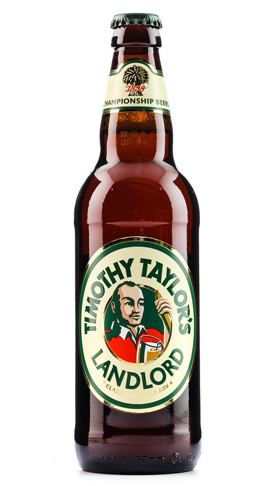 Timothy Taylor - The drinkers' favourite, and the classic pale ale, with complex citrus and hoppy aroma. Landlord was launched in 1952 and has won more awards nationally than any other beer including CAMRA draught Supreme Champion Beer of Britain four times.