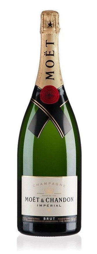 This good value magnum of Moët Impérial comes from the large Champagne house of LVMH (Louis Vuitton Moët Hennessey) and is typically a blend of 30 to 40% Pinot Noir, 30 to 40% Pinot Meunier with 20 to 30% Chardonnay for balancing crispness and freshness. It's made from Moët & Chandon's vineyards in all of the five main grapegrowing areas in the Champagne region.