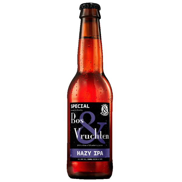 Bos & Vruchten is a Hazy IPA enriched with forest fruit puree. The beer is fruity and creamy with pronounced berry notes, a light sweetness, and a soft, refreshing finish. The mild bitterness and full mouthfeel create a balanced and refreshing beer with an expressive fruit character.