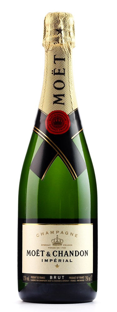 Mo?t Imp?rial is one of the biggest volume champagnes in the world from the vast house of LVMH (Louis Vuitton Mo?t Hennessey) and is typically a blend of 30 to 40% Pinot Noir, 30 to 40% Pinot Meunier with 20 to 30% Chardonnay for balancing crispness and freshness. It's made from Mo?t & Chandon's vineyards in all of the five main grapegrowing areas in the Champagne region.