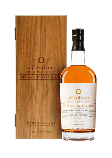 Cardrona 2022 birthday Single Malt Whisky release is an exquisite marriage of four hand selected Felton Road Pinot noir casks. With just 1,217 bottles, buy one to drink and one to keep. This 700ml bottle comes in a beautiful oak box, and are all individually numbered.
