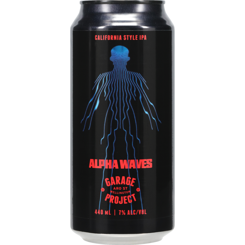 Your mind is swimming in a sea of calm. Alpha Waves, California style bright, golden IPA. Brewed with a blend of Mosaic, Krush and Simcoe hops loaded with tropical fruits, fresh citrus, with crisp alpha acids balancing clean sweet malt. Sit back, relax and ride those alpha waves.
