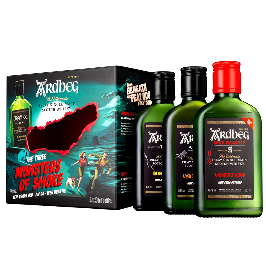 The Monsters of Smoke trio pack includes 3x20cl bottles of whisky from