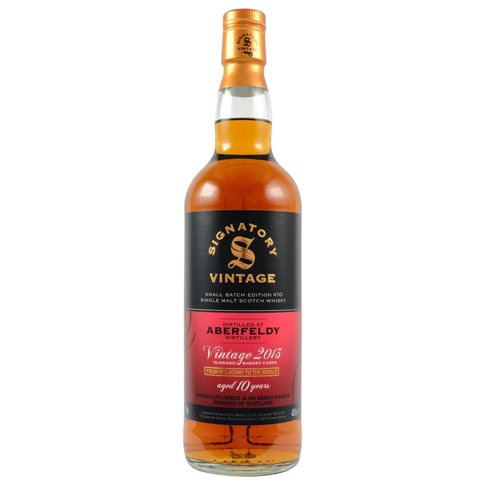 Part of Signatory's all new 'Small Batch' series, this expression of Aberfeldy has been selected from a range of ex Oloroso sherry casks. There is a lovely combination of both light and dark fruits, with notes of peaches as well as sultanas, cherries and vibrant red fruits. This fruitiness is balanced with notes of cedar wood, cocoa powder and hints of waxiness.