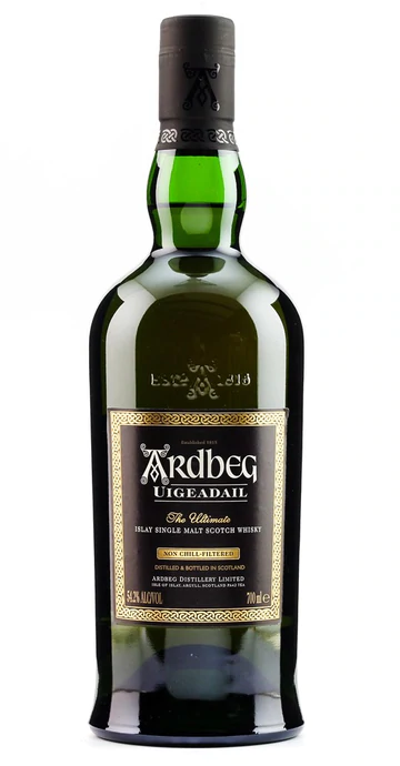 Ardbeg Uigeadail (pronounced Oog-a-dal), takes its name from the brooding mysterious loch which provides the peat-laden water for Ardbeg. This is a special vatting of different styles of Ardbeg, marrying together its traditional deep, smoky notes with the luscious, sweet, raisiny tones of old ex-Sherry casks.