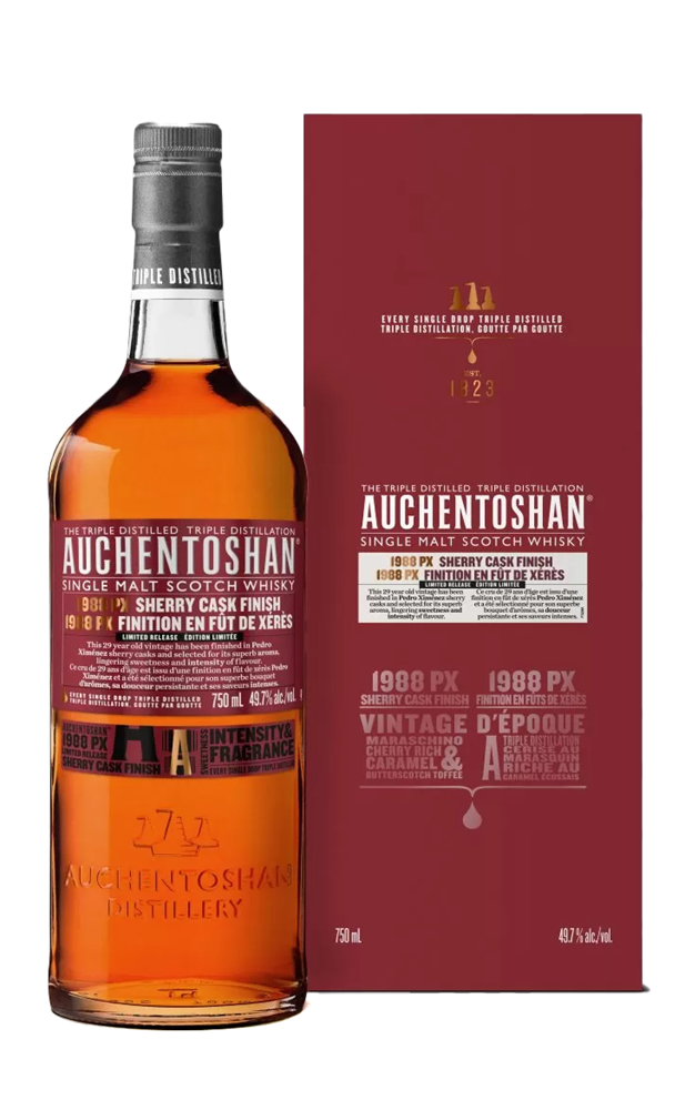 This limited edition Auchentoshan was distilled in 1988 and matured in Spanish oak casks and finished in PX sherry casks.