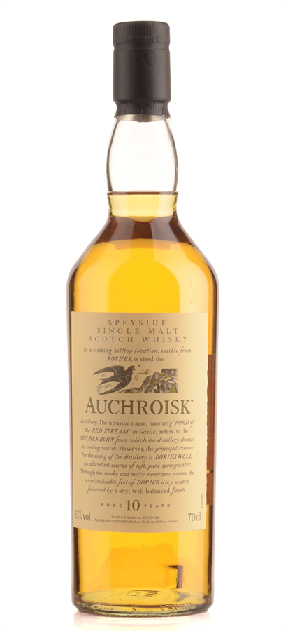 This single malt lies at the heart of the Auchroisk range, it being the only official bottling. Released in the Flora and Fauna series in 2001, having previously been marketed as The Singleton of Auchroisk.
