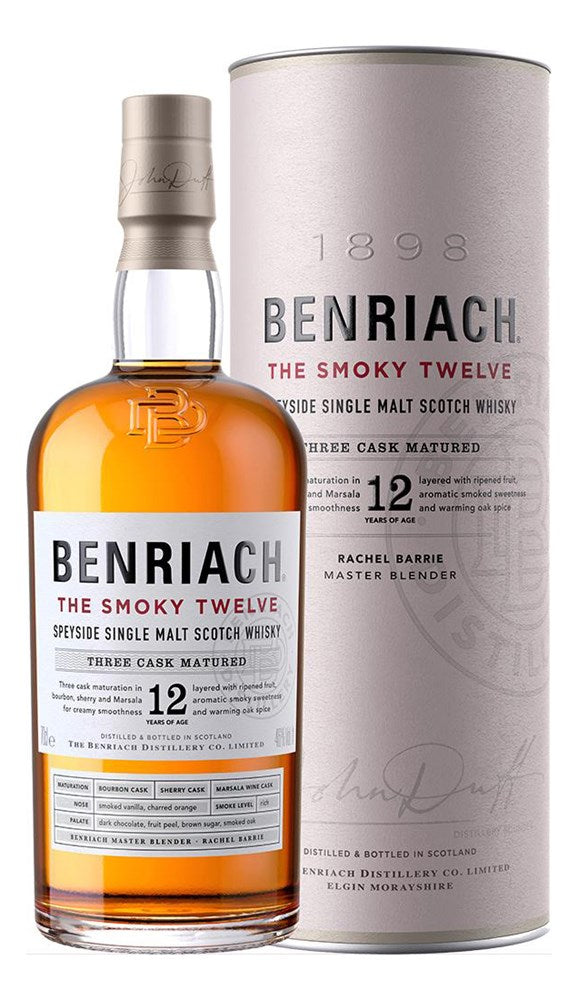 A whisky that focuses on the richer side of Benriach's spirit, as well as it's darker smokier side. Aged for 12 years in a combination of bourbon, sherry and marsala casks, the peat smoke is complimented by dried fruit and vanilla from the bourbon and sherry casks, and rich, sweet fruit from the marsala.