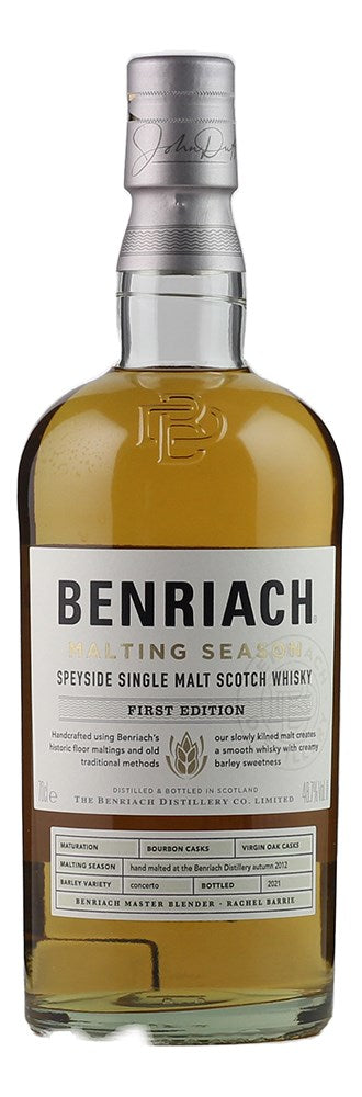 This special release from Benriach is the first expression in a century to be produced entirely using barley malted from Benriach's historic floor maltings. This whisky has been matured in both bourbon and virgin oak barrels. This brings out notes of barley sugar, almond fudge, orchard apples, vanilla and honeyed pear. A long lasting finish is full of malty notes.