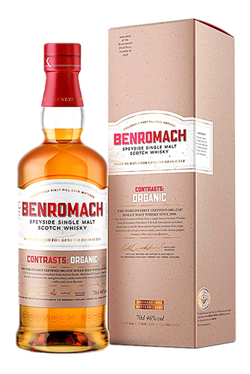 The first certified organic Single Malt Scotch whisky since 2006, this is the latest of Benromach's acclaimed 'Contrasts: Organic' series. Distilled in 2013 this follows previous releases unpeated spirit, matured in virgin-American oak. Offering an aromatic and sweet fragrant oaky note, rich with vanilla and toffees, the nose is creamy and malty as well. The mouthfeel is creamy again with banana custard, moving to coffee and cocoa flavours. Fully accredited by the UK Soil Association, this is a rare example of totally organic Single Malt Scotch Whisky.