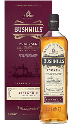 A wonderful expression of Bushmills single malt. This is the second release in the Steamship Collection and it was fully matured in Ruby Port Casks.