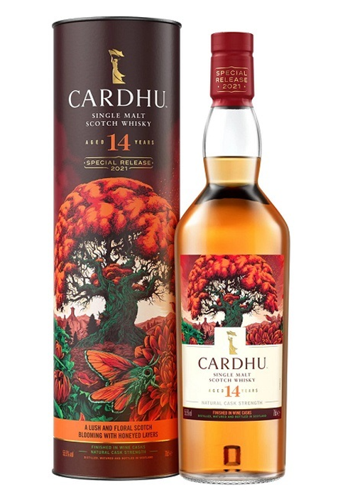 The Cardhu 14 Year Old Single Malt Scotch Whisky "The Scarlet Blossoms of Black Rock". As the fable goes, upon a hill of blackened rock grew a mysterious tree with scarlet blossoms of irresistible charm. Their sweet aroma of honeycomb and spice was so alluring, it transformed the dark hill into lush abundance. Where crimson petals had fallen, a distillery took root. The spellbinding scent filled the air, infusing Cardhu with its distinctively enchanting character.