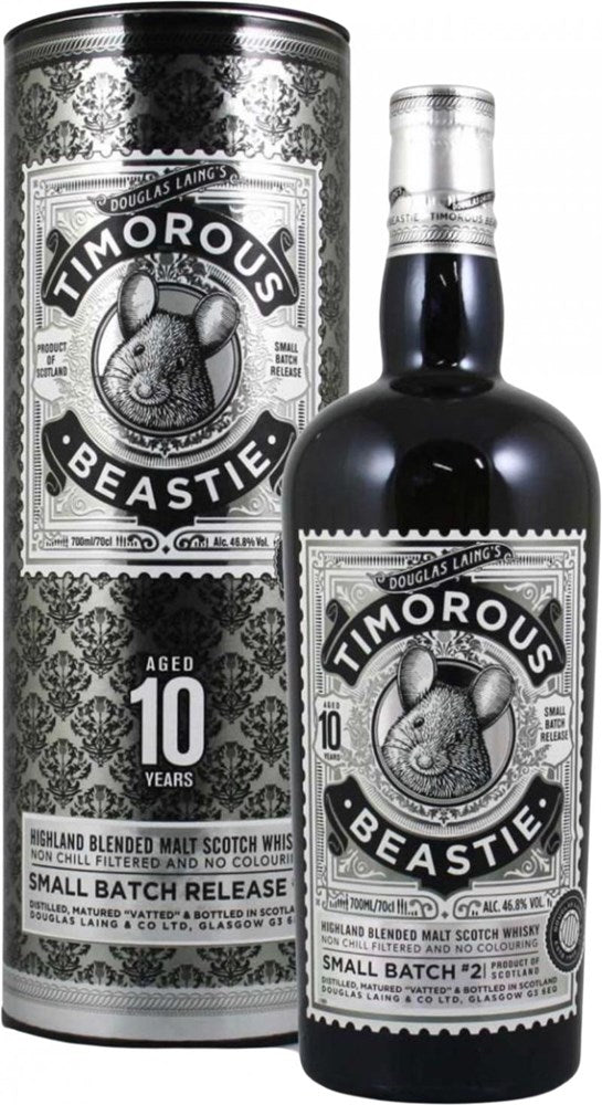 Timorous Beastie 10 Years Old is a beautifully aged, Highland “Vatted” Malt, that is proudly offered without colouring or chill-filtration. Bottled at 46.8% alcohol strength, Timorous Beastie 10 Years Old's tasting notes include spiced autumnal fruit, complemented by honey, cereal and orange. The fourth release under the brand to carry an age statement, following Timorous Beastie 18 Years Old, 40 Years Old and 21 Years Old bottlings.