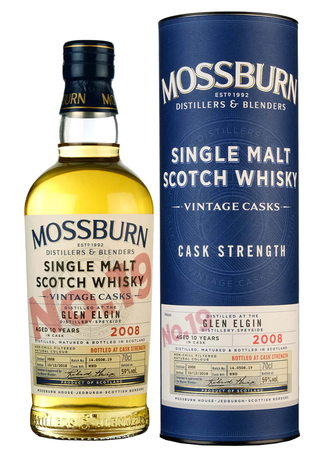 Distilled in 2008 at Glen Elgin distillery, this 10-year-old Speyside single malt was bottled in December 2018 by indie bottler Mossburn, and is the 19th whisky in its Vintage Casks series. Matured in a single cask, it has a sweet and spicy character, with notes of black pepper, caramel and oak spice.