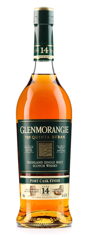 The darkest and most intense whisky in the extra-matured range, Glenmorangie Quinta Ruban has spent 10 years maturing in American white oak casks, before being transferred into specially selected ruby port pipes from the Quintas or wine estates of Portugal.