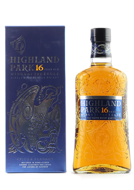 Highland Park - The 16 year old Wings of the Eagle is a celebration of Orkney’s wild island climate. Its spicy and elegant character reveals a sophisticated combination of flavours, layered as intricately as the feathers of an eagle’s wing.