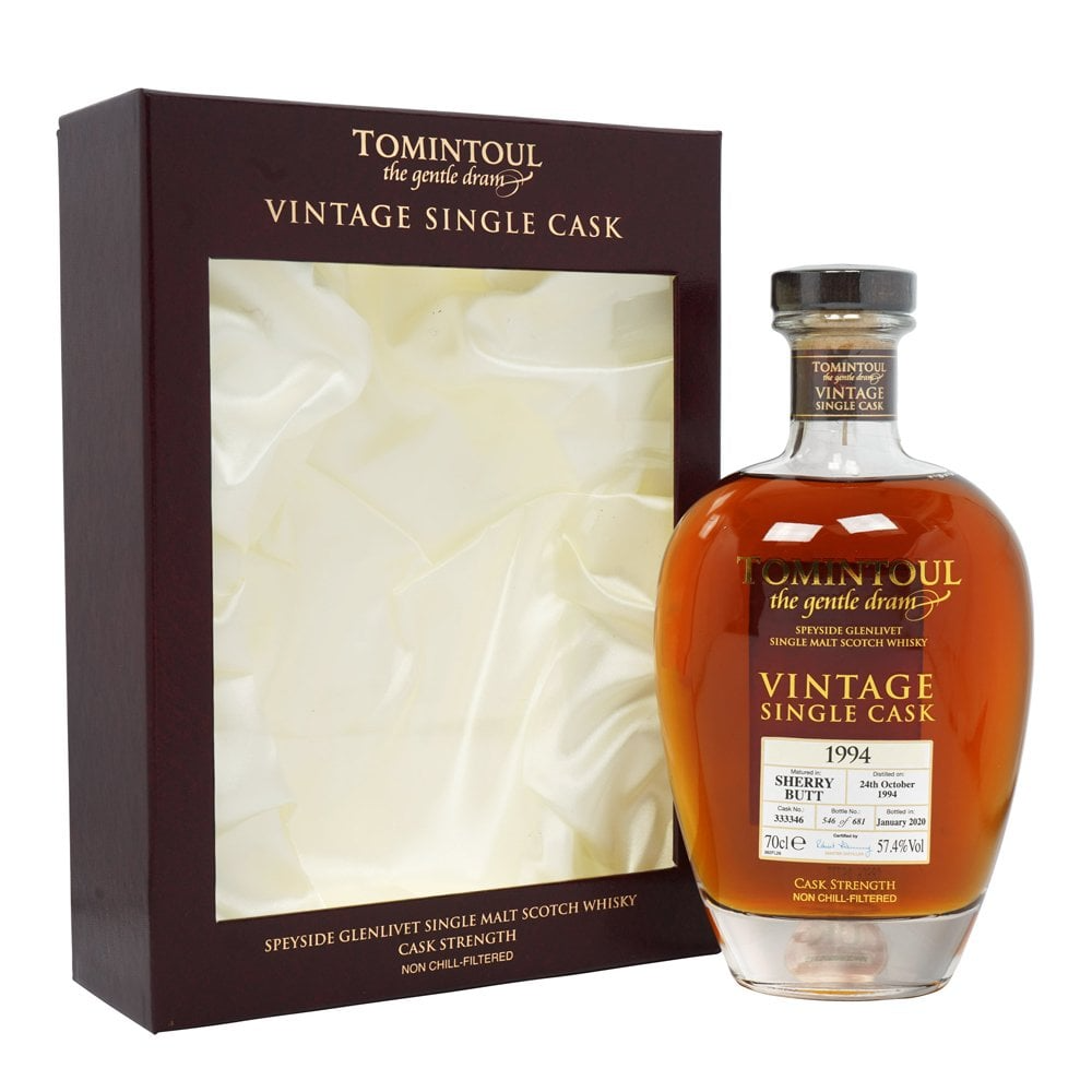 Another wonderful Tomintoul from the Vintage Single Cask range, this one was distilled back in 1994 and rested in a single Oloroso sherry butt! Eventually, it was bottled up at cask strength, with an outturn of 681 bottles at 57.4% ABV, packing oodles of dark fruit and toffee.