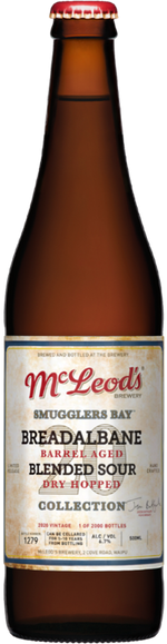 'Smuggler Bay' Series - Breadalbane Barrel-aged Blended Sour is an enticing blend of numerous sour beer vintages from our barrel program, the majority being former Marlborough Chardonnay casks. Aromas of grapefruit & dank gooseberry lead to a soft sourness hinting at oak & vanilla. Finish